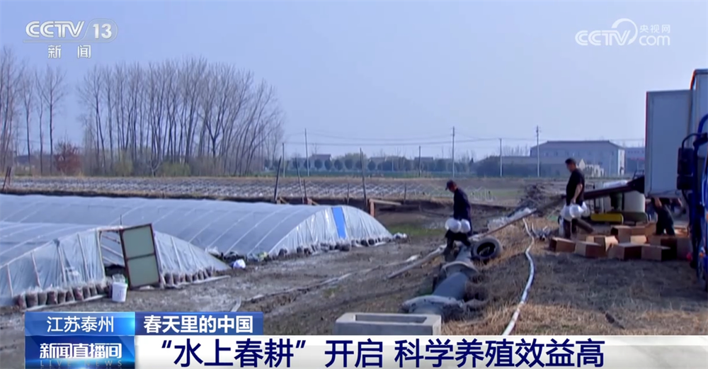 这是泰州兴化市陈堡镇唐庄村的蟹塘,水产专家也正正在指点养殖户放养蟹苗和虾苗。近年来,本地鼎力推广河蟹套养青虾的养殖模式,春季,养殖户会正在蟹塘中投放虾苗。