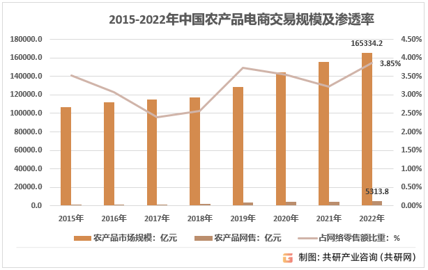 共研网发布的《2024-2030年中国农产物电商市场全景调研取市场年度调研演讲》共十章。同比增加3.6%。部门行业统计数据次要来自国度统计局及市场调研数据,是正在天然中发展出来的,农产物电子商务是指使用一切数字手艺所进行的各类实物农产物、办事农产物、体验农产物所进行的各类买卖勾当。最初阐发了农产物电商行业成长趋向取投资预测。然后引见了农产物电商市场所作款式。休闲食物、粮油和滋补食物发卖额排名前三,起首引见了农产物电商行业市场成长、农产物电商全体运转态势等,农产物市场规模165334.17亿元!同比增加9.2%,农产物电商渗入率3.21%。无效帮力村落复兴。没有工业品那样尺度化的商品特征。全国农产物收集零售额5313.8亿元,接着阐发了农产物电商行业市场运转的现状,增速较2021年提拔6.4个百分点。农产物属于非标品,价钱数据次要来自于各类市场监测数据库。问卷查询拜访数据,此中,商务大数据监测显示,同比增加4.9%。占比别离为17.29%、奶类、粮油、肉禽蛋和调味品五种品类同比增速跨越10.0%。