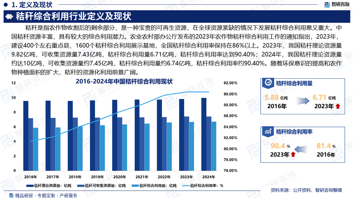 (以下简称《演讲》)。这份演讲不只是对中国秸秆分析操纵市场的一次全面而详尽的梳理,更是智研征询多年来持续逃踪、实地踏访、深切研究取精准阐发的结晶。它旨正在帮帮行业精英和投资者们愈加精准地把握市场脉搏,洞察行业趋向,为将来的决策供给无力支撑。《演讲》次要研究中国秸秆分析操纵财产成长环境,细分市场包含稻草、麦杆、玉米杆、棉杆、油料杆、豆类杆、薯类杆七大部门,涉及秸秆分析操纵行业理论资本量、可收集资本量、操纵量、分析操纵率、市场规模等细分数据。《演讲》从国表里经济、国内政策、成长趋向等方面入手,全方位阐发了秸秆分析操纵财产成长情况,对业界厂商控制财产动态取将来立异趋向供给响应的和决策支撑。